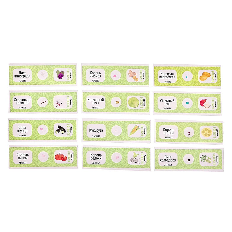 Набор микропрепаратов — это 12 слайдов с готовыми образцами для исследования под микроскопом.