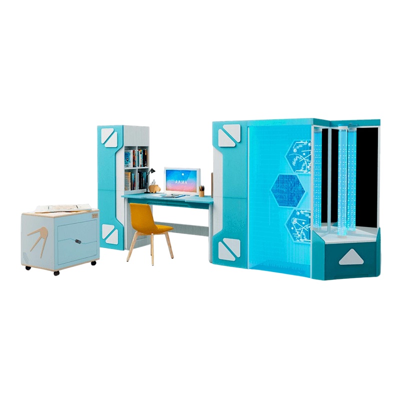 Комплекс включает встроенную световую песочницу, место под конструирование с мягким магнитным конструктором «МАККИ 37», место психологической разгрузки с фиброоптическим душем и воздушно-пузырьковой колонной, встроенную музыкальную систему и многое другое.