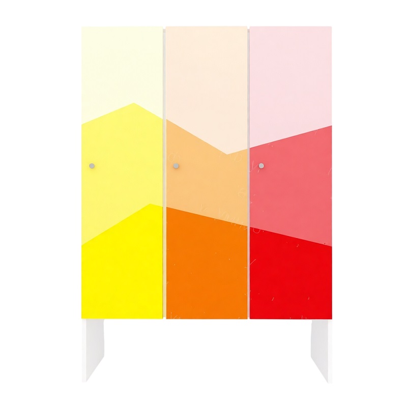 Шкафчик из новой коллекции «Весенний закат» разработан специально для детских садов. Минимализм деталей и однотонная поверхность дверок не создают визуального шума и органично дополняют интерьер.