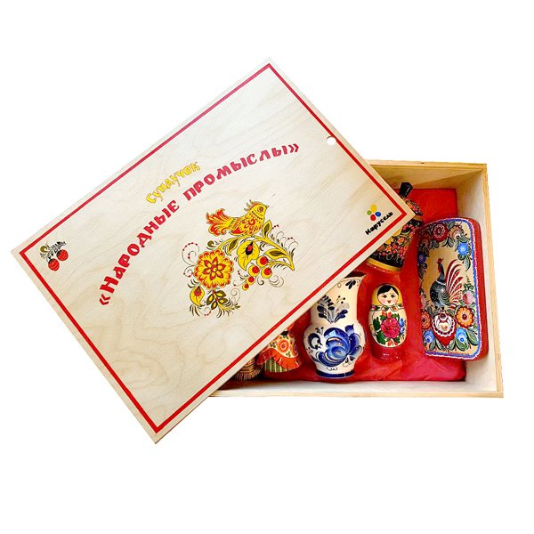 Сундучок “Народные промыслы” от ТД “Карусель” - это уникальная подборка изделий русского декоративно-прикладного искусства, с ее помощью вы легко познакомите дошколят с традиционной культурой Руси.