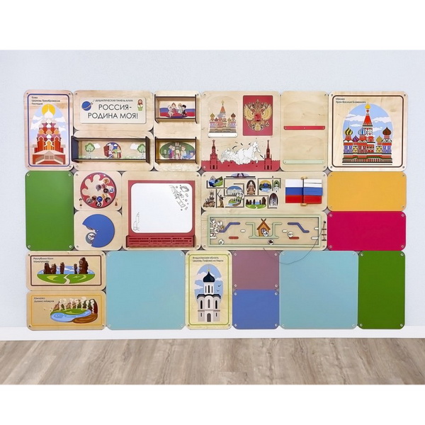 Набор дополнительных модулей для комбинации с дидактическими настенными панелями. Отличное интерьерное решение для оформления помещений в едином стиле.
