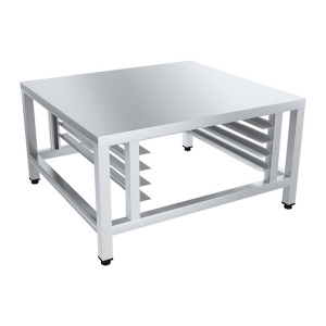 Подставка предназначена для установки пароконвектоматов. Оснащается универсальными направляющими под пекарские листы размером 600х400 мм и гастроемкости GN1/1. Изготавливается из нержавеющей стали, каркас сварной. Поставляется в собранном виде. Упаковка: стрейч-пленка.