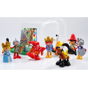 Детали – составные фигурки и декоративные элементы – выполнены из пластика, безопасного для здоровья детей. В комплект входит контейнер для удобного хранения конструктора.