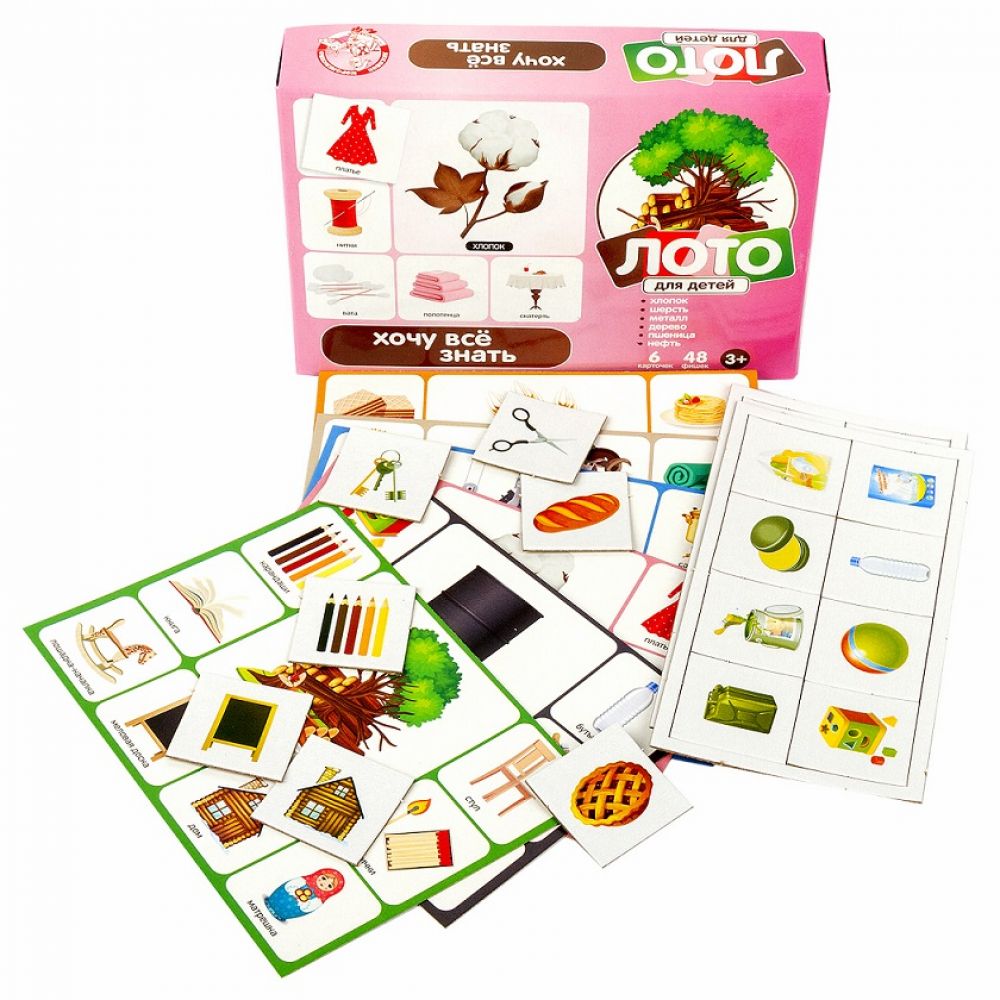 Лото развивает кругозор, память, внимание, речь, сенсорное и визуальное восприятие. Игра знакомит ребёнка с основными видами сырья (хлопок, шерсть, металл, дерево, пшеница, нефть) и продукцией, которую из этого сырья производят.