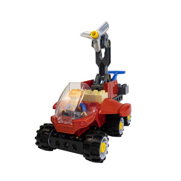 Конструктор позволит ребенку самостоятельно построить такие виды строительной техники, как: экскаватор, трактор, бетономешалку, погрузчик, строительный кран и другие.