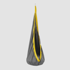 Материал изделия – водостойкая пвх-ткань в сером и жёлтом цветах, внутри сидушки мягкий поролон. Подвес гамака к комплексу осуществляется с помощью стальных карабинов и прочного нейлонового троса, выдерживающего вес до 150 кг. «Кокон» можно приобрести отдельно или в составе спортивно-игрового комплекса «Сенсорум».