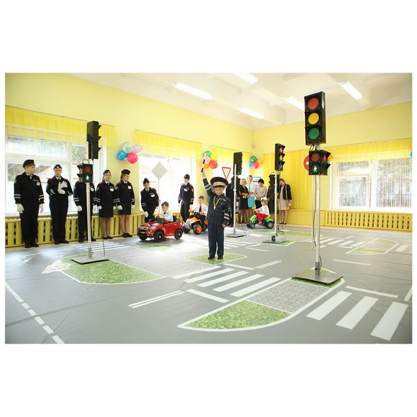 С помощью данного мобильного городка можно изучить все основные темы, такие как переход проезжей части по регулируемому пешеходному переходу, переход проезжей части по нерегу-лируемому пешеходному переходу, поведение на остановке общественного транспорта, виды дорожной разметки, знакомство с дорожными знаками и т.д.