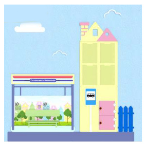 - здание с четырьмя кармашками для размещения информационных материалов и тактильной дорожкой для развития сенсорных способностей дошкольников;